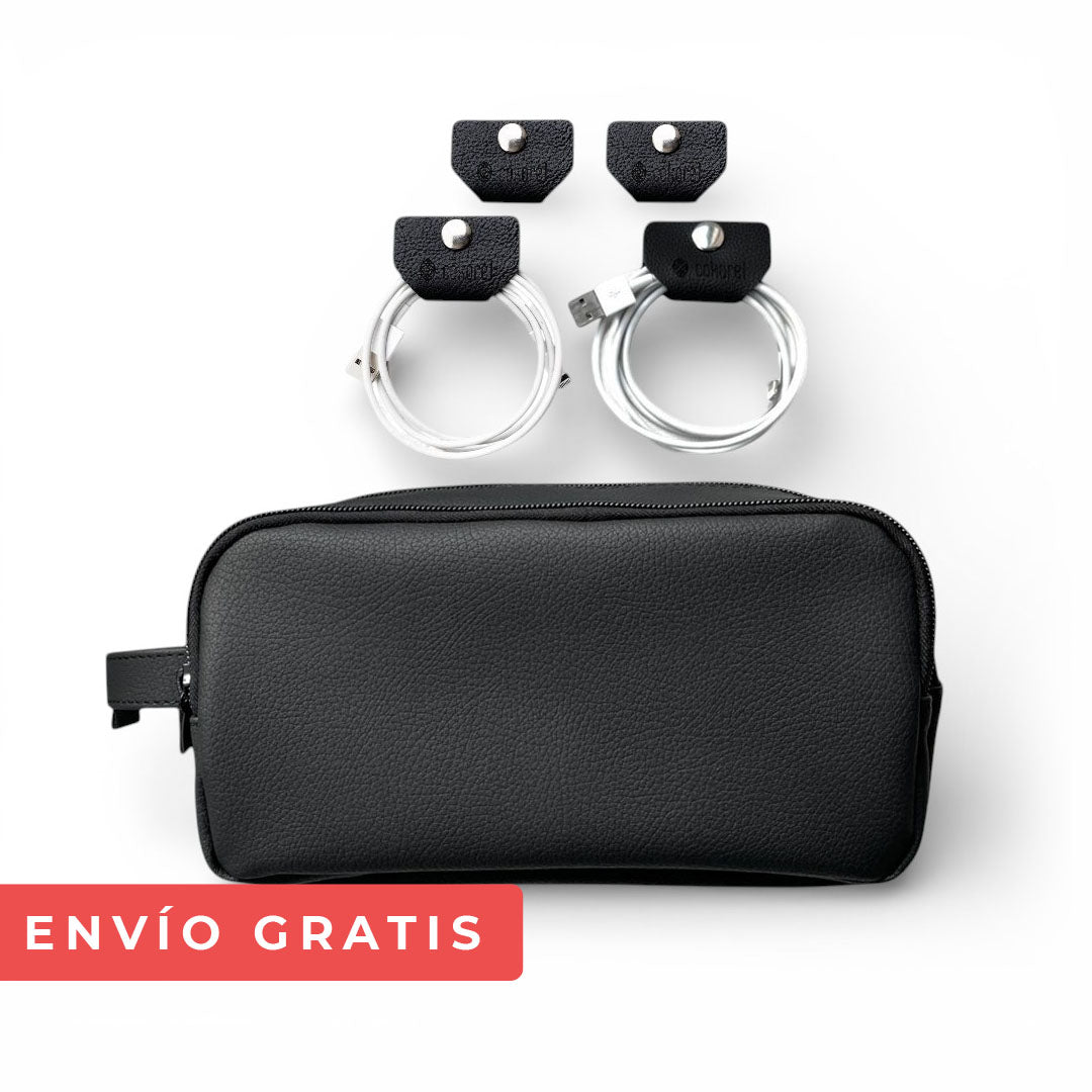 KIT ESTUCHE DE VIAJE + PORTA CABLES HOMBRE NEGRO