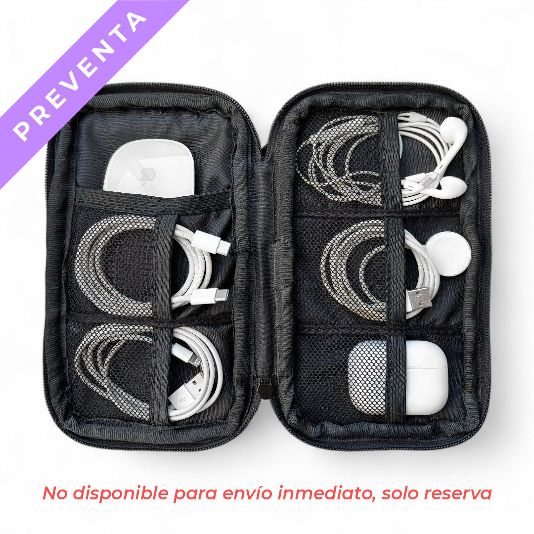 Especificaciones: Apto para organizar cables cargadores de celular, cargador de computador (no muy gueso), multipuertos, mouse, powerbank, audífonos de cable, audífonos inalámbricos, usb y otros accesorios tecnológicos.